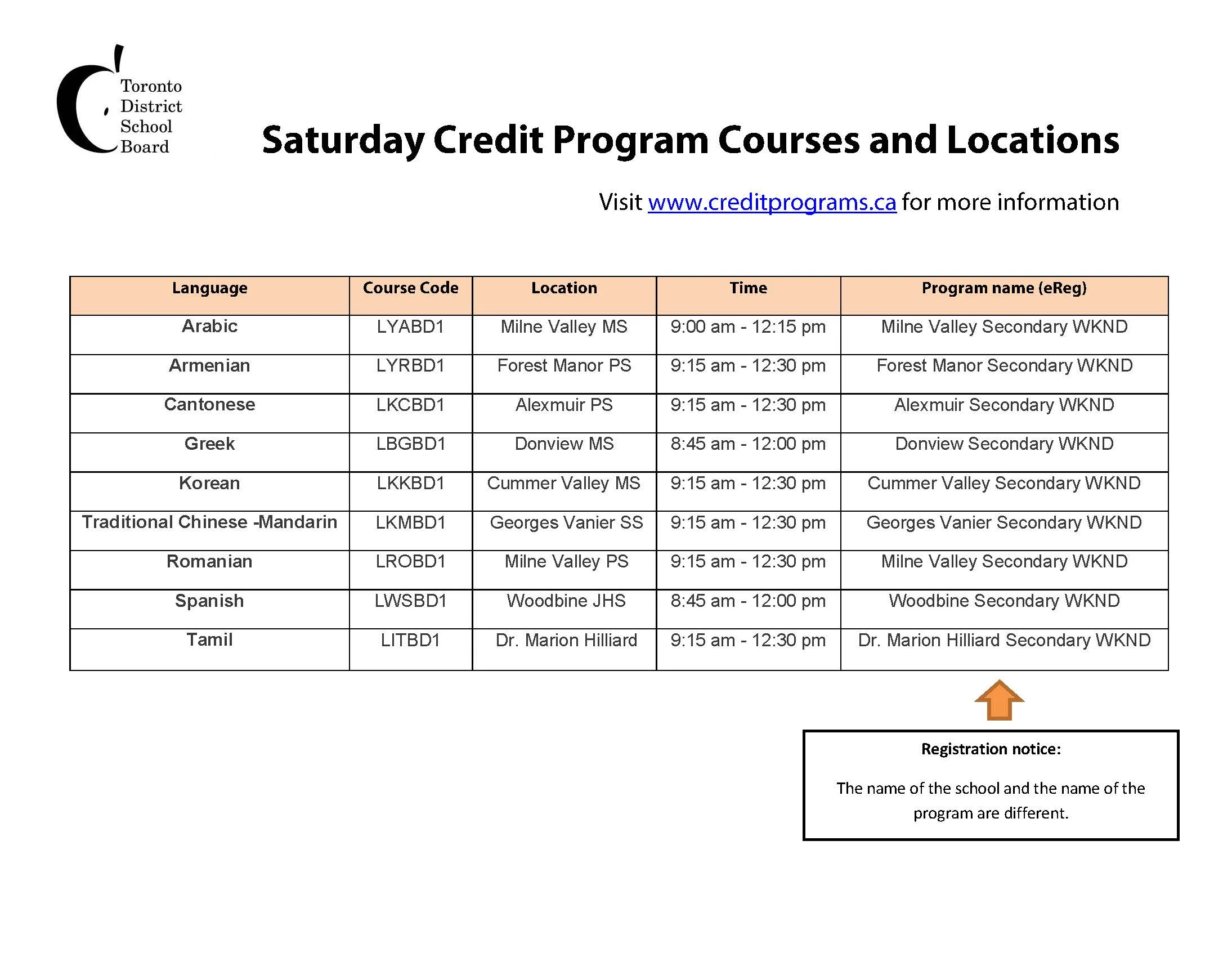 Registration is now open for TDSB’s pilot Saturday Credit Program. The program, which is open to current high school students only, offers the opportunity for students to study one of nine International Languages, Level 1 Academic.